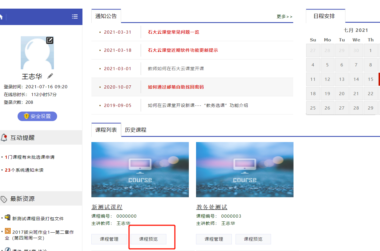 1.网址获取方式:登录石大云课堂后台,查看课程列表,找到学期教学任务对应的课程,点击课程预览,将浏览器中网址填入即可。