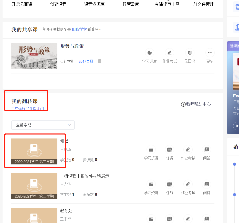 第一步:登录惟真学堂后台,在“我的翻转课”中找到学期教学任务对应的课程,点击进入课程后台。
