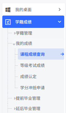 1.进入[学籍成绩]-[我的成绩]-[课程成绩查询]